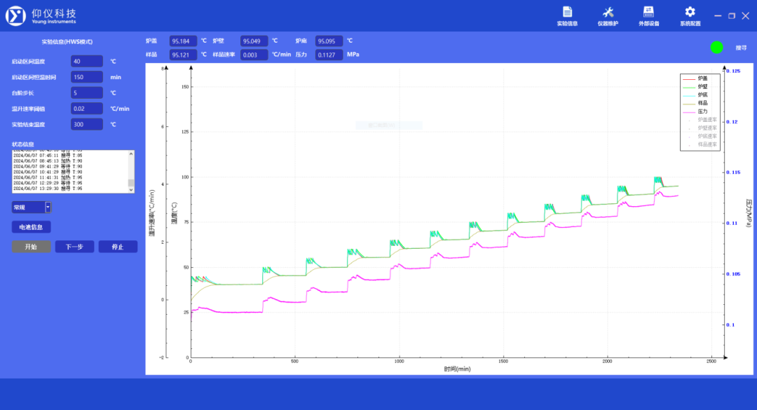 電池ARC在更大爐腔尺寸下的絕熱性能是一個難以攻克的技術點,而仰儀科技在深刻理解應用與研究需求的基礎上,通過獨特技術完成了爐體結構改良+軟件算法優(yōu)化,有效解決了大腔體與電池表面溫差大、絕熱性能欠佳的問題。使得電池級ARC兼顧了大尺寸及高精密電池自放熱檢測能力。用獨創(chuàng)的電池模擬系統(tǒng),全系列儀器經過反復驗證校準,確保儀器在各溫度臺階的溫升速率和理論值始終保持一致,每一個臺階的溫升速率檢測誤差均小于0.002°C/min。儀器可實現優(yōu)于0.005°C/min的自放熱檢測靈敏度,遠優(yōu)于國內外同類型產品,測試結果穩(wěn)定而精確。