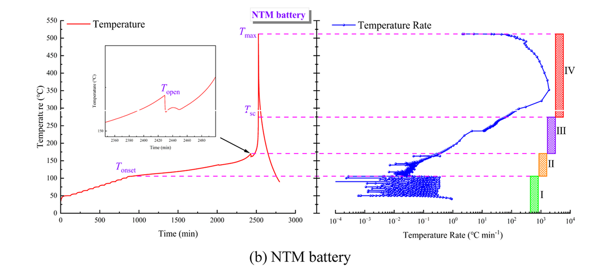本研究使用仰儀科技小型電池絕熱量熱儀BAC-90A,對(duì)三種18650電池(以NaxTMO2[NTM]為陰極的鈉離子電池和兩種以LiFePO4[LFP]、LiNi0.5Co0.2Mn0.3O2[NCM]為陰極的鋰離子電池)的熱失控特性及危險(xiǎn)性進(jìn)行了研究對(duì)比分析。