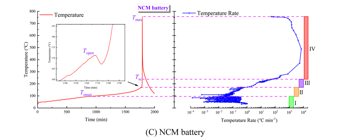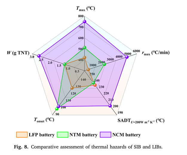 三種電池的熱失控評(píng)估模型表明,熱危險(xiǎn)性順序?yàn)镹CM電池>NTM電池>LFP電池。