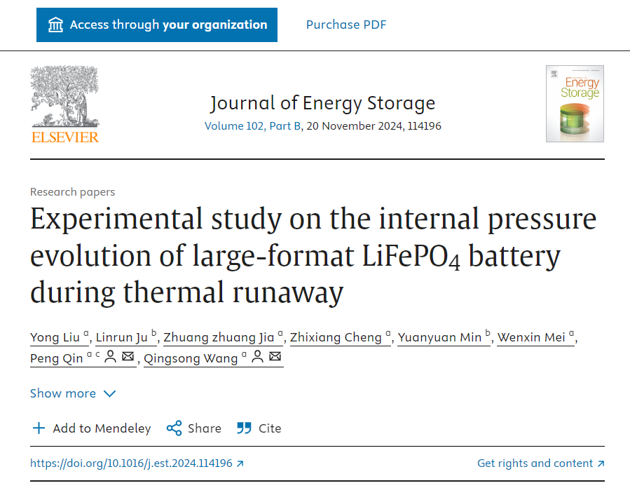 中國(guó)科學(xué)技術(shù)大學(xué)王青松教授團(tuán)隊(duì)在《Journal of Energy Storage》(IF:8.9)期刊發(fā)表題為《Experimental study on the internal pressure evolution of large-format LiFePO4 battery during thermal runaway》論文。該研究由中國(guó)科學(xué)技術(shù)大學(xué)火災(zāi)科學(xué)國(guó)家重點(diǎn)實(shí)驗(yàn)室、合肥國(guó)軒高科動(dòng)力能源有限公司和合肥工業(yè)大學(xué)電氣與自動(dòng)化工程學(xué)院等機(jī)構(gòu)聯(lián)合支持,重點(diǎn)探討了大容量磷酸鐵鋰電池在熱失控過(guò)程中的內(nèi)部壓力演變機(jī)制。